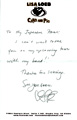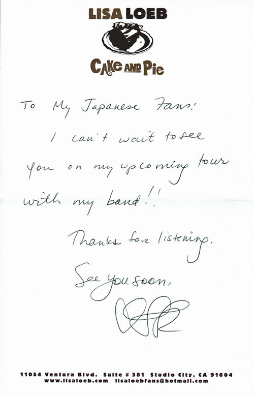 タックさんがLisaにファンレターを送り、その中で「もしよければ・・・」という感じで日本のファンへのショートメッセージをお願いしたところ、返事の中に日本のファンに向けたメッセージが同封されていたそうです。